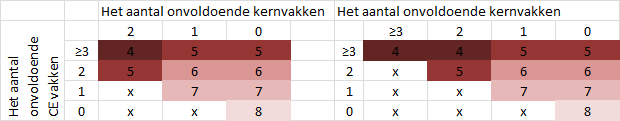 gebaseerd op het aantal onvoldoende CE vakken, te komen op het